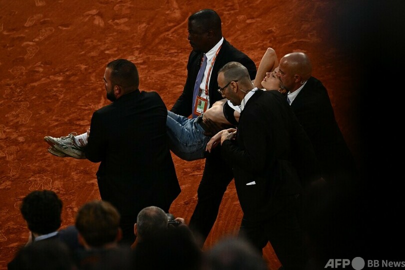 環境活動家がネットに体くくりつける、全仏OP男子準決勝が中断