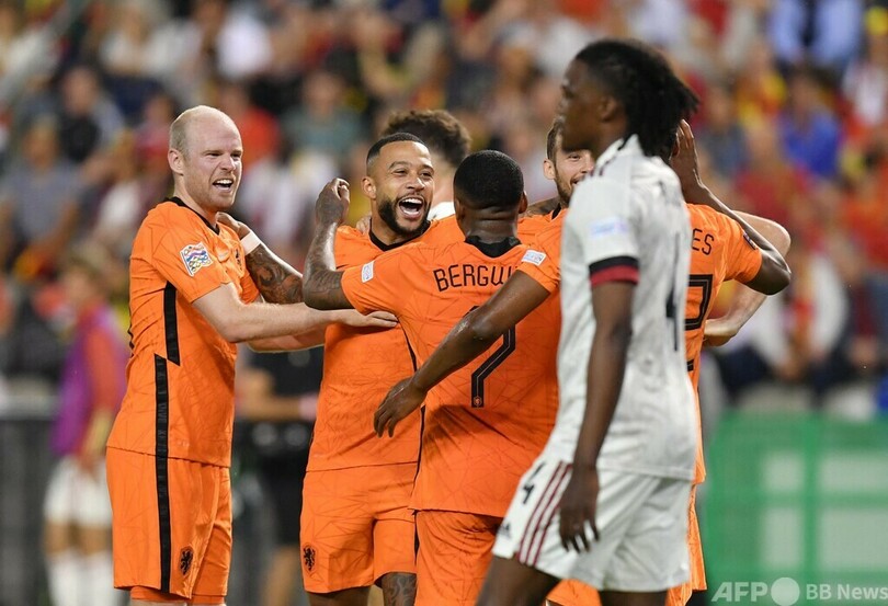 ステーフェン・ベルフワイン(Steven Bergwijn)のゴールで前半に先制したオランダは、後半にメンフィス・デパイ(Memphis Depay)の2ゴールとダンゼル・ダムフリーズ(Denzel Dumfries)の得点でリードを広げると、ベルギーの反撃を終了間際のミシ・バチュアイー(Michy Batshuayi)の1点に抑えた。(c)AFP