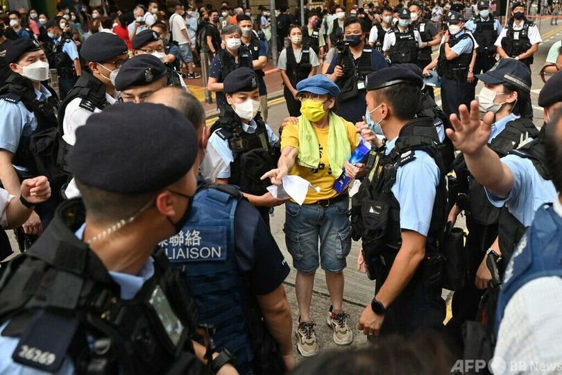 【6月5日 AFP】中国で1989年に平和的な民主化運動が武力弾圧された天安門(Tiananmen)事件から33年を迎えた4日、香港では公の場での追悼行為が全面的に禁止される中、6人が警察に逮捕された。