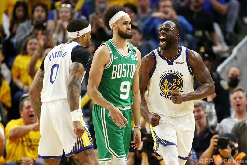 ウォリアーズは29点を挙げたステフェン・カリー(Stephen Curry)を筆頭にシュート力の高さを見せた一方、守備でも見事なプレーでセルティックスの得点源を封じた。第1戦は最終クオーターに12点差を逆転されて敗れたが、この日は同じ過ちを犯さない姿勢を見せ、第3クオーターに2桁得点差を築いてそのまま勝利した。