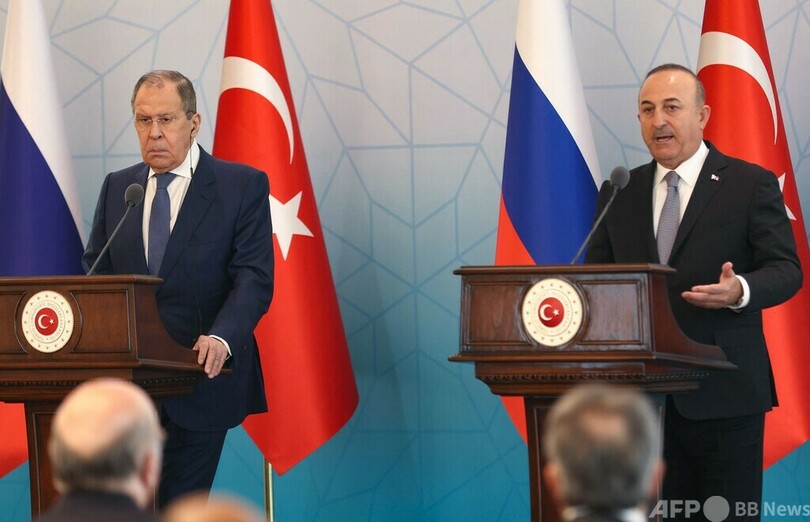 ラブロフ氏は、トルコのメブリュト・チャブシオール(Mevlut Cavusoglu)外相と会談し、ロシアによる海上封鎖のために行き場を失っている小麦などのウクライナ産穀類の輸出に向けた安全回廊の設置について議論。会談後に共同記者会見を開いた。