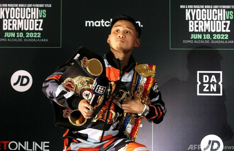 【6月9日 AFP】10日に行われるボクシング、WBA世界ライトフライ級王座統一戦に向けた記者会見が8日、メキシコ・グアダラハラ(Guadalajara)で行われ、スーパー王者の京口紘人(Hiroto Kyoguchi)と正規王者エステバン・ベルムデス(Esteban Bermudez、メキシコ)が出席した。(c)AFP