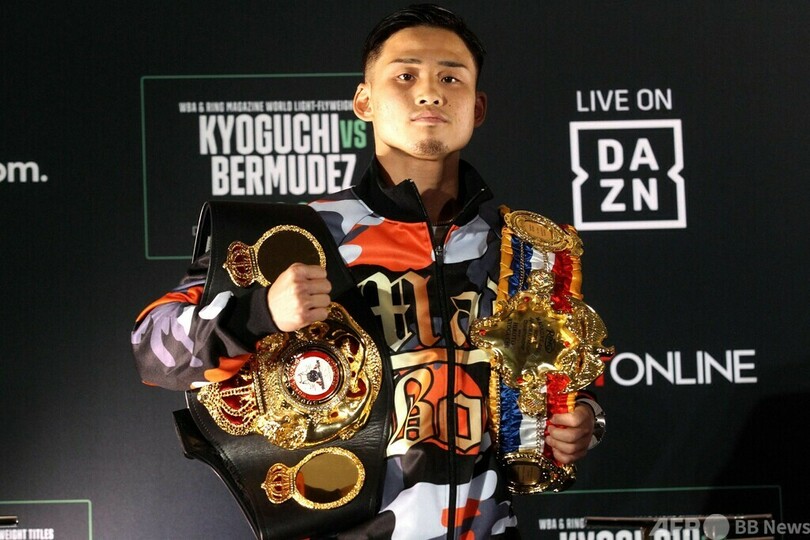 【6月9日 AFP】10日に行われるボクシング、WBA世界ライトフライ級王座統一戦に向けた記者会見が8日、メキシコ・グアダラハラ(Guadalajara)で行われ、スーパー王者の京口紘人(Hiroto Kyoguchi)と正規王者エステバン・ベルムデス(Esteban Bermudez、メキシコ)が出席した。(c)AFP
