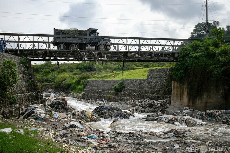 プラスチックごみを受け止めるフェンスを川に グアテマラ