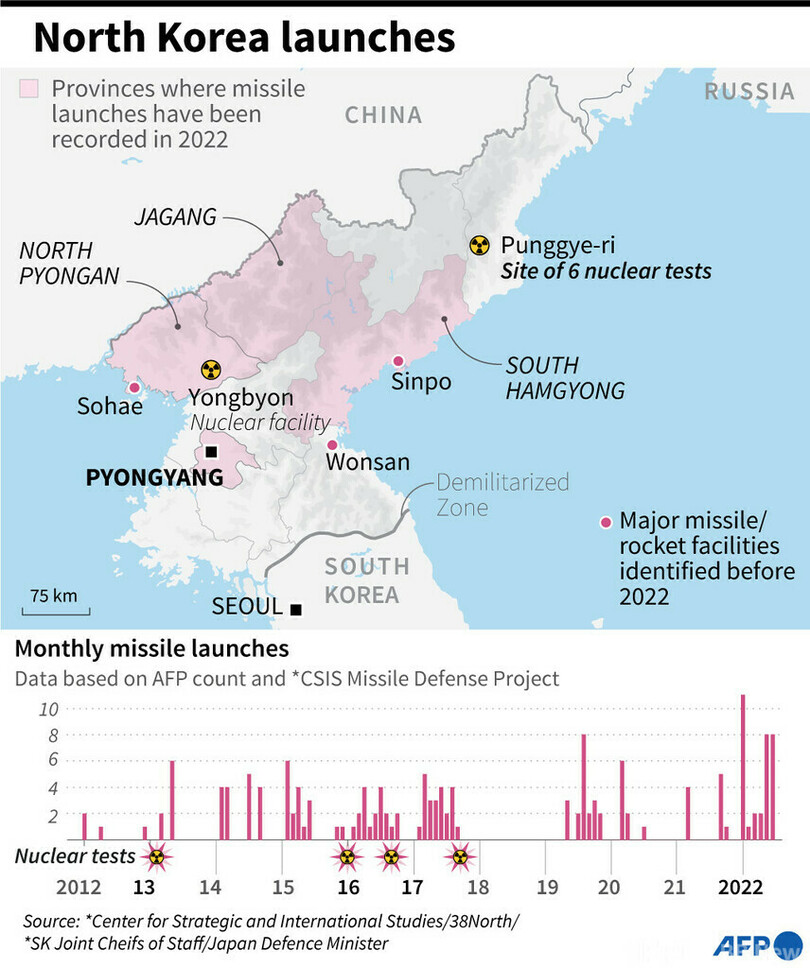 【6月9日 AFP】韓国政府系シンクタンクの韓国国防研究院(KIDA)は9日、北朝鮮が今年に入って18回実施したミサイルの試射などに最大6億5000万ドル(約870億円)を費やしたとの報告書を公表した。新型コロナウイルス感染症対策で全国民にワクチンを接種可能な費用を上回る額という。