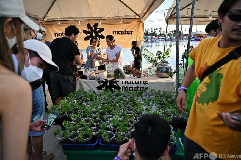 【6月12日 AFP】タイ中部のナコンパトム(Nakhon Pathom)県で、大麻の所持・栽培の合法化を祝うイベント「タイランド420: リーガルレーオ!?(Thailand 420: Legalaew!?)」が開催され、大麻販売屋台や大麻を吸引する人の姿がみられた。(c)AFP
