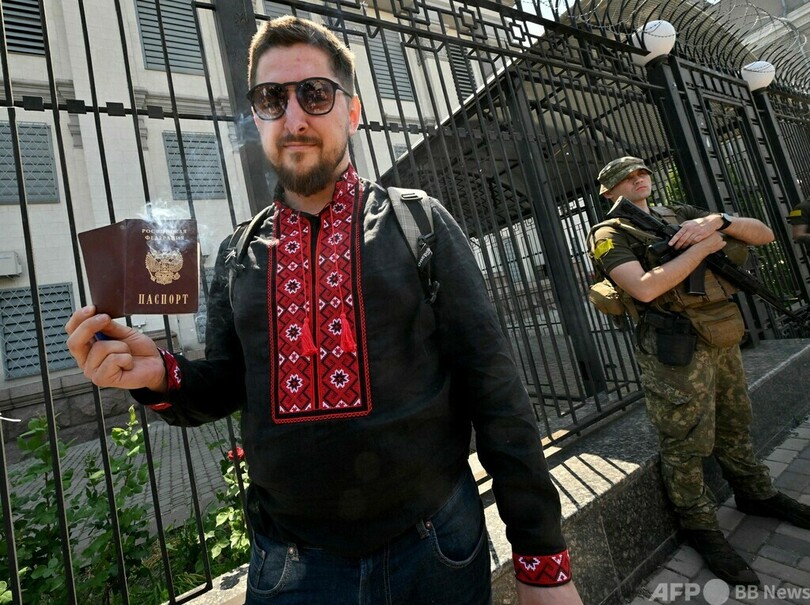 【6月13日 AFP】ウクライナの首都キーウにあるロシア大使館前で12日、ウクライナ侵攻に反対するロシア人男性が、自身のパスポート(旅券)を燃やして抗議した。