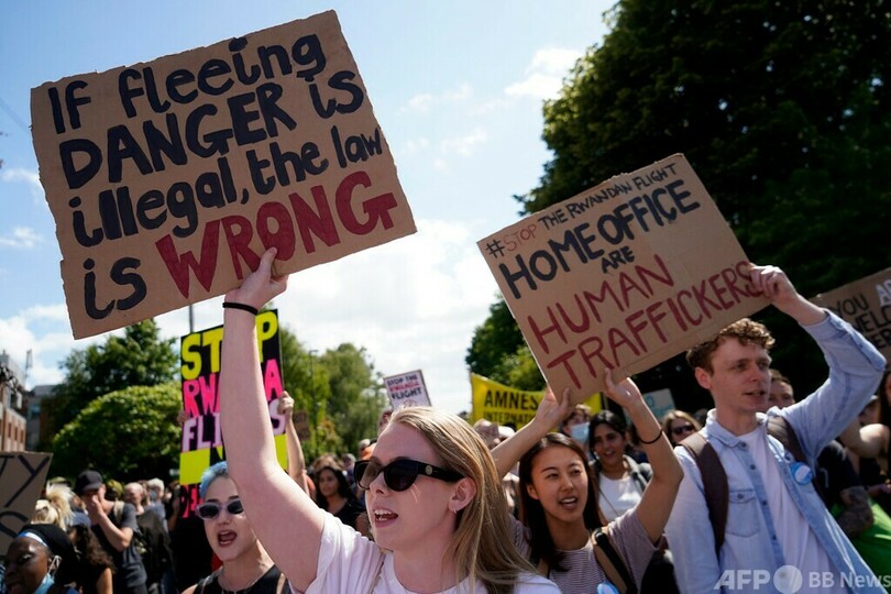 【6月15日 AFP】英国に入国した難民認定申請者をルワンダに送る計画をめぐり、欧州人権裁判所(ECHR)が差し止めを命じたのを受け、英政府は難民を乗せた飛行機の第1便の出発中止を余儀なくされた。これに反発した保守党議員グループは15日、ECHRの創設を規定している欧州人権条約からの離脱を政府に訴えた。