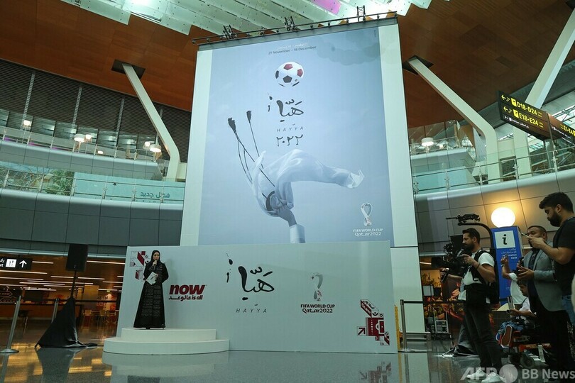【6月16日 AFP】11月に開幕するサッカーW杯カタール大会(2022 World Cup)の公式ポスターが15日に公開され、ドーハのハマド国際空港(Hamad International Airport)でセレモニーが行われた。