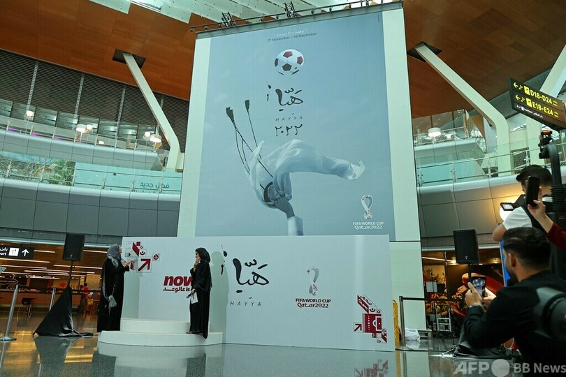 【6月16日 AFP】11月に開幕するサッカーW杯カタール大会(2022 World Cup)の公式ポスターが15日に公開され、ドーハのハマド国際空港(Hamad International Airport)でセレモニーが行われた。