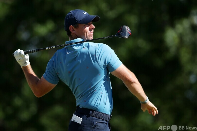 マキロイは3番で痛恨のダブルボギーをたたいたものの、12番で4メートル半のバーディーパットを決めると、パー5の14番では2打でのグリーンオンに成功してタップインバーディーを奪い、17番でも約3メートル半のバーディーパットを沈めた。(c)AFP/Jim SLATER