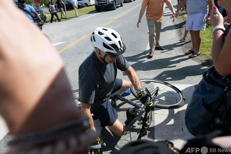 バイデン氏は州立公園内で、地元住民らに話しかけようと自転車を止めて降りる際に転倒。すぐに立ち上がり「大丈夫だ」と言った。ペダルに足を固定するストラップから足を抜こうとしてバランスを崩したという。