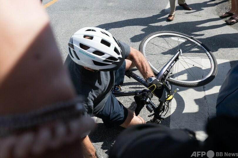 バイデン氏は州立公園内で、地元住民らに話しかけようと自転車を止めて降りる際に転倒。すぐに立ち上がり「大丈夫だ」と言った。ペダルに足を固定するストラップから足を抜こうとしてバランスを崩したという。