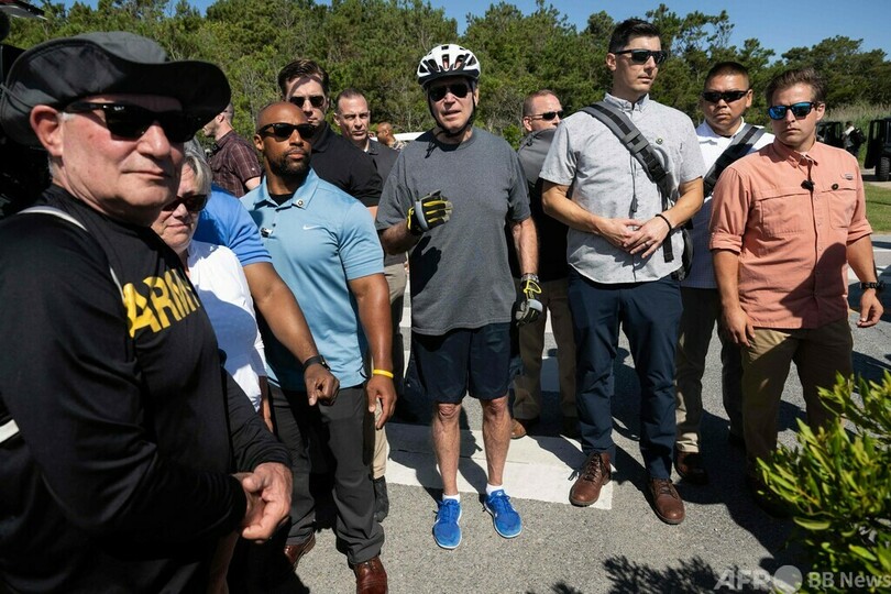 バイデン氏は州立公園内で、地元住民らに話しかけようと自転車を止めて降りる際に転倒。すぐに立ち上がり「大丈夫だ」と言った。ペダルに足を固定するストラップから足を抜こうとしてバランスを崩したという。
