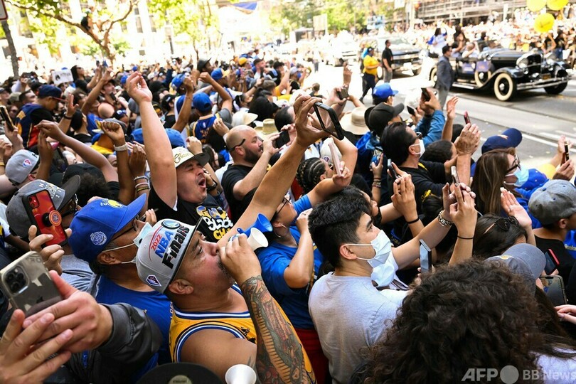 ウォリアーズがNBA優勝パレード ファンが通り埋め尽くす