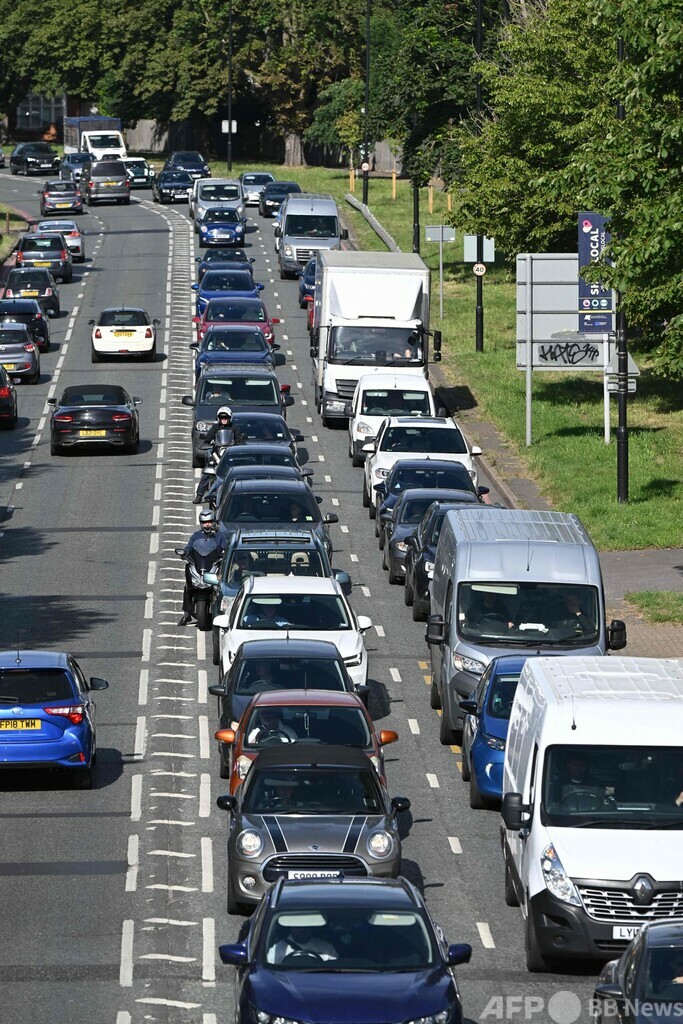 首都ロンドンでは、タクシー会社が需要急増を報告。主要道路はバスと車で混雑し、自転車がその間を縫うように走行した。ロンドン郊外のバス停では午前6時過ぎには長蛇の列ができたが、バスは満員通過し、多数の人が乗車を諦めた。(c)AFP/Ben PERRY