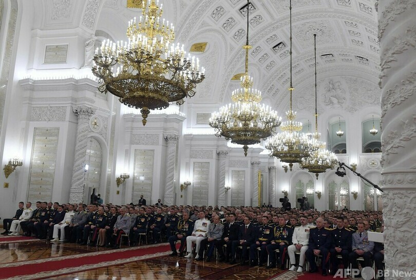 プーチン氏はクレムリン(Kremlin、大統領府)で、軍学校の卒業生を前に「特別軍事作戦において、わが軍の兵士が勇気とプロ意識を持って真の英雄のように行動していることを誇りに思う」と述べた。