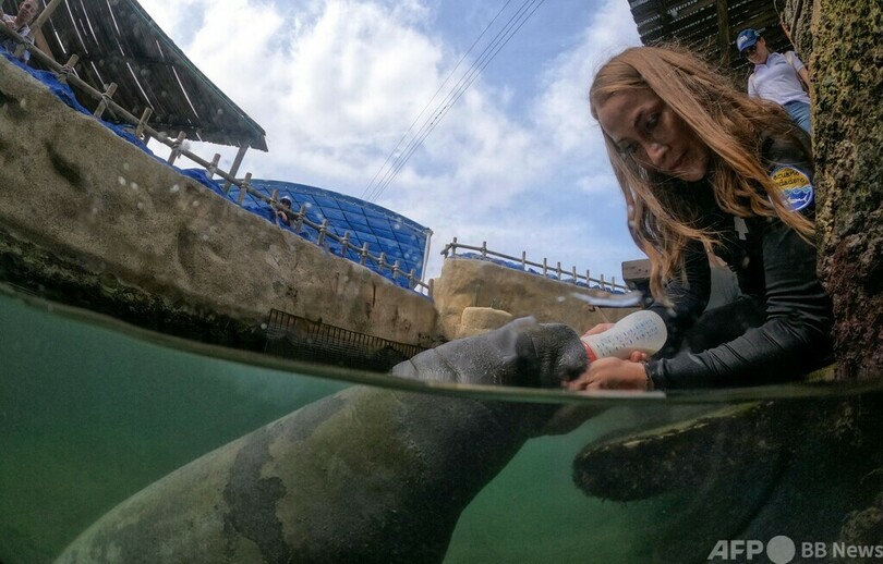 それから約9か月。「タサヘリート(Tasajerito)」と名付けられた赤ちゃんは、専用プールでビタミン剤入りの特製ミルクを飲みながら命をつないでいる。職員がつきっきりで世話をしており、飲むミルクの量もここ数か月で6倍に増えた。体長1.5メートル、体重53キロにまで成長し、飼育係から浮き方や潜り方、泳ぎ方を教わっている。