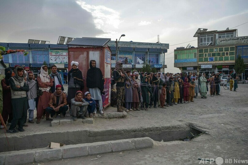 病院前には地元の男性100人ほどが行列をつくっていた。タリバン戦闘員によると、献血のためだという。「けさからもう約300人が献血した」と戦闘員は語った。(c)AFP/Emmanuel PEUCHOT and Abdullah HASRAT