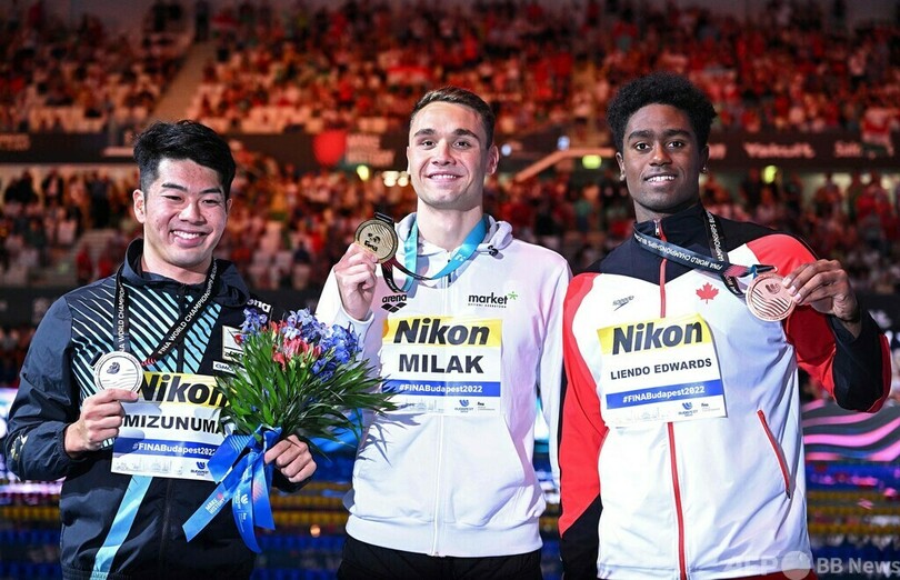 【6月25日 AFP】第19回世界水泳選手権(19th FINA World Championships)は24日、ハンガリー・ブダペストで7日目が行われ、競泳の男子100メートルバタフライ決勝では、水沼尚輝(Naoki Mizunuma)が50秒94で銀メダルを獲得した。