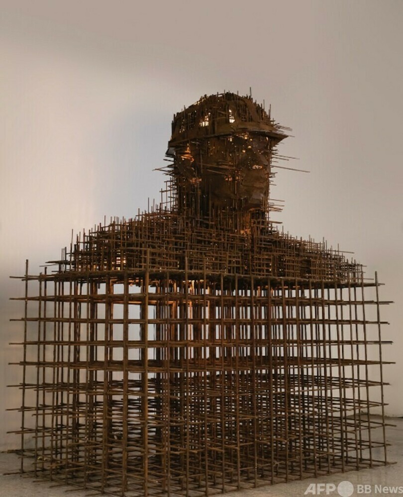 中国の大学生、重さ700キロの鉄筋・鉄片で制作した彫刻作品で父親に敬意