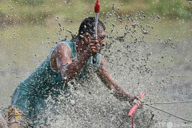 泥しぶき上げて水田をダッシュ! 伝統の水牛レース タイ