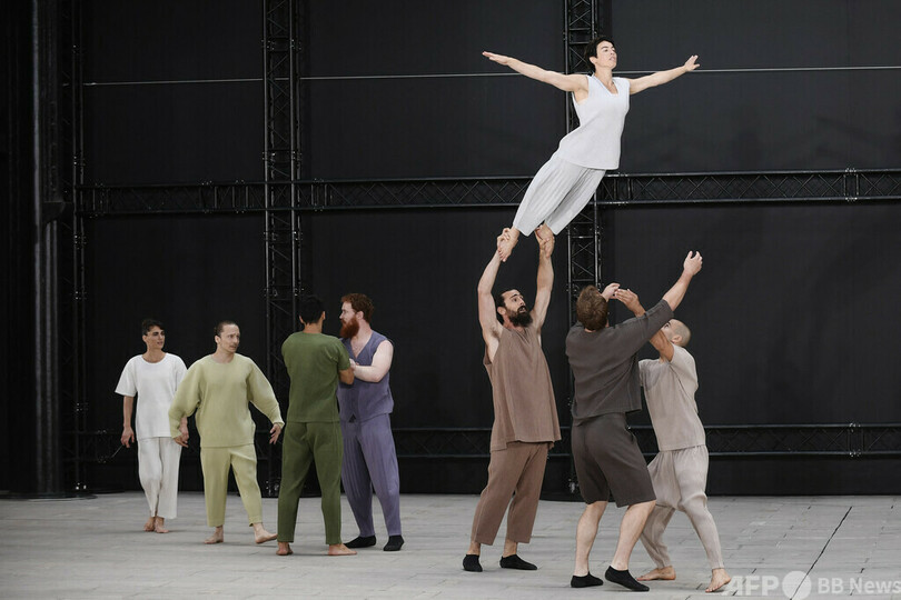 【7月3日 AFP】23年春夏パリ・ファッションウィーク(Paris Fashion Week)のショーで「イッセイミヤケ(ISSEY MIYAKE)」のメンズウエアを着たモデルたち。フランス・パリで。(c)AFP