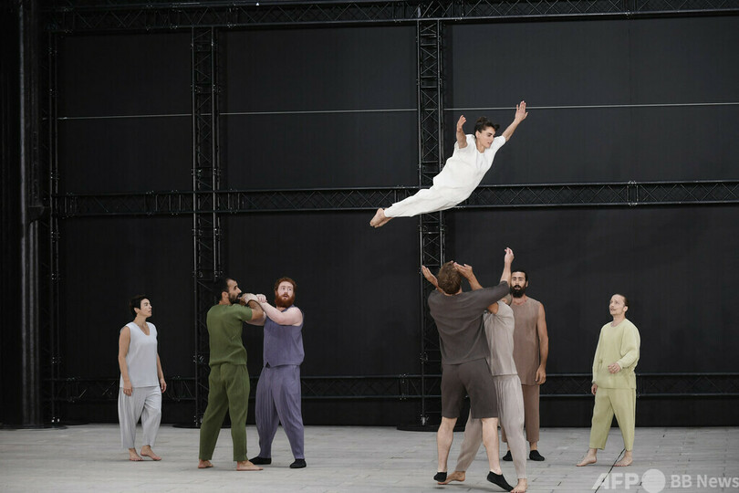 【7月3日 AFP】23年春夏パリ・ファッションウィーク(Paris Fashion Week)のショーで「イッセイミヤケ(ISSEY MIYAKE)」のメンズウエアを着たモデルたち。フランス・パリで。(c)AFP