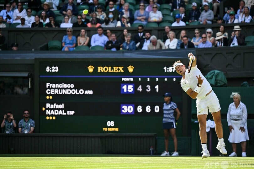 【6月29日 AFP】テニス、ウィンブルドン選手権(The Championships Wimbledon 2022)は28日、男子シングルス1回戦が行われ、大会第2シードのラファエル・ナダル(Rafael Nadal、スペイン)は6-4、6-3、3-6、6-4でフランシスコ・セルンドロ(Francisco Cerundolo、アルゼンチン)に勝利し、初戦を突破した。