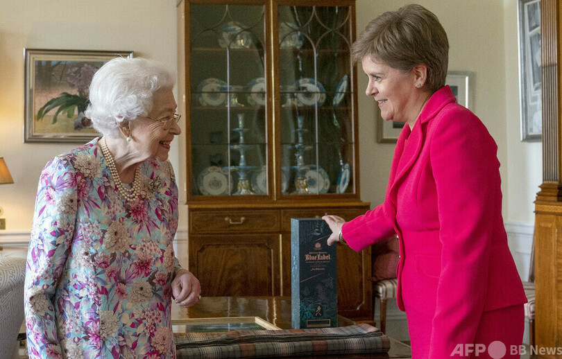 しかし最近は体調が上向いている様子で、スタージョン氏との面会時の動画では、女王はつえを使用していなかった。また、スタージョン氏が贈り物として、150ポンド(約2万5000円)の高級ウイスキー「ジョニーウォーカー・ブルーラベル(Johnnie Walker Blue Label)」を手渡す場面も捉えられていた。