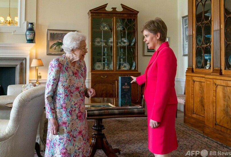 しかし最近は体調が上向いている様子で、スタージョン氏との面会時の動画では、女王はつえを使用していなかった。また、スタージョン氏が贈り物として、150ポンド(約2万5000円)の高級ウイスキー「ジョニーウォーカー・ブルーラベル(Johnnie Walker Blue Label)」を手渡す場面も捉えられていた。