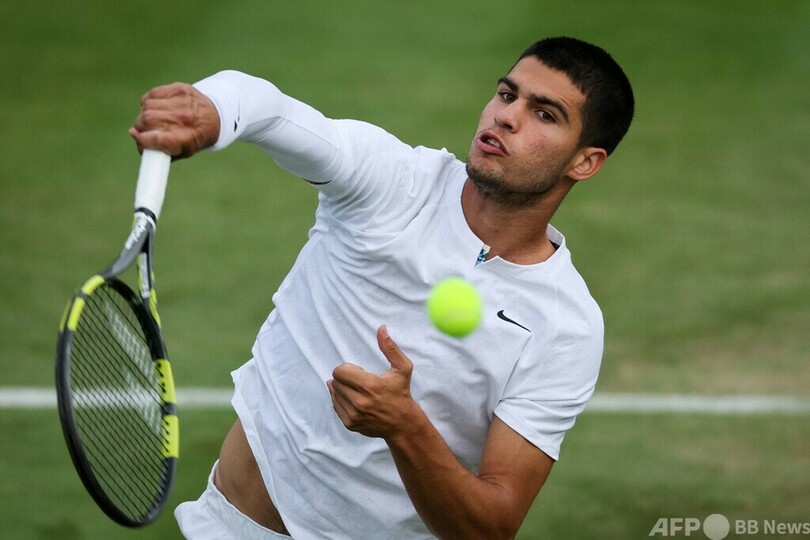 19歳のアルカラスは、クリスチャン・ハリソン(Christian Harrison、米国)の途中棄権で勝ち上がった第32シードのオスカー・オッテ(Oscar Otte、ドイツ)と3回戦で激突する。(c)AFP/Dave JAMES