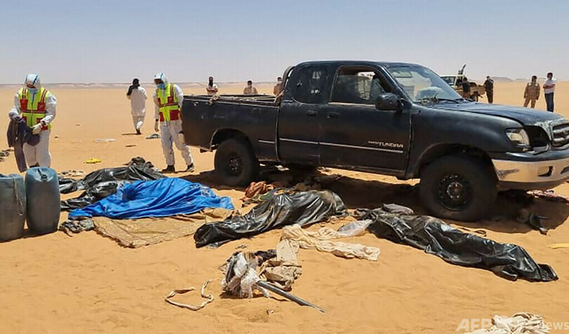 【6月30日 AFP】リビア南部のチャド国境近くの砂漠で、20人の遺体が見つかった。車が故障して脱水症状で死亡したものとみられている。同国南東部クフラ(Kufra)の救助隊が29日、明らかにした。