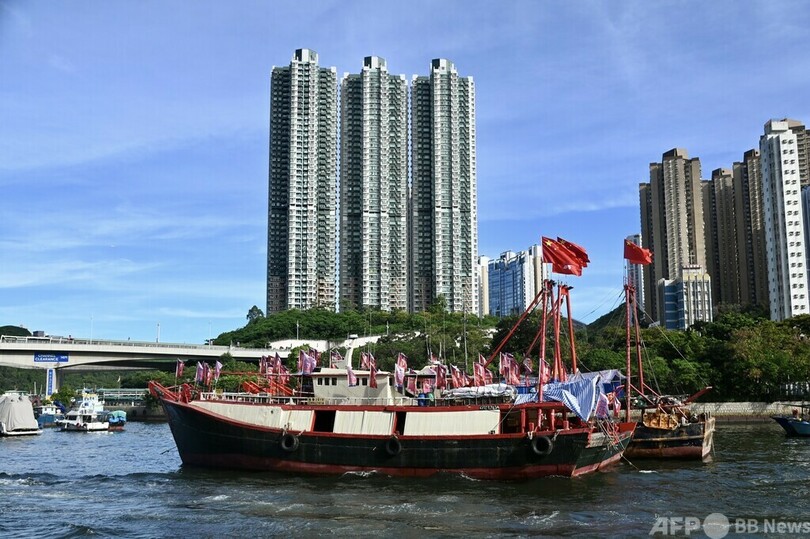 香港の漁船が祖国復帰25年を祝福 中国国旗と地区旗掲げる
