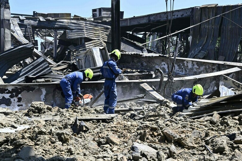 ウクライナ側は、27日に商業施設を攻撃したのはロシア軍だと非難しているが、ロシア側はこれを否定。ミサイルは武器庫を狙ったもので、商業施設は当時営業時間外だったと主張している。(c)AFP