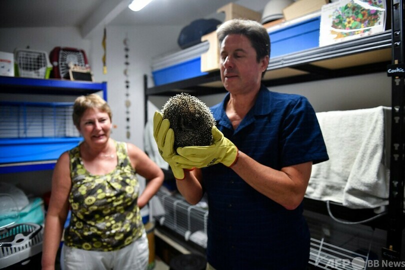 【7月10日 AFP】フランス・パリ南西郊外オルセー(Orsay)にあるハリネズミの保護施設「レ・プティ・キピック(Les P'tits Kipik)」。創設者のサラ・スタール(Sara Stahl)さんと夫のジェローム(Jerome Stahl)さんは、自宅の庭でハリネズミを保護する活動を続けている。(c)AFP