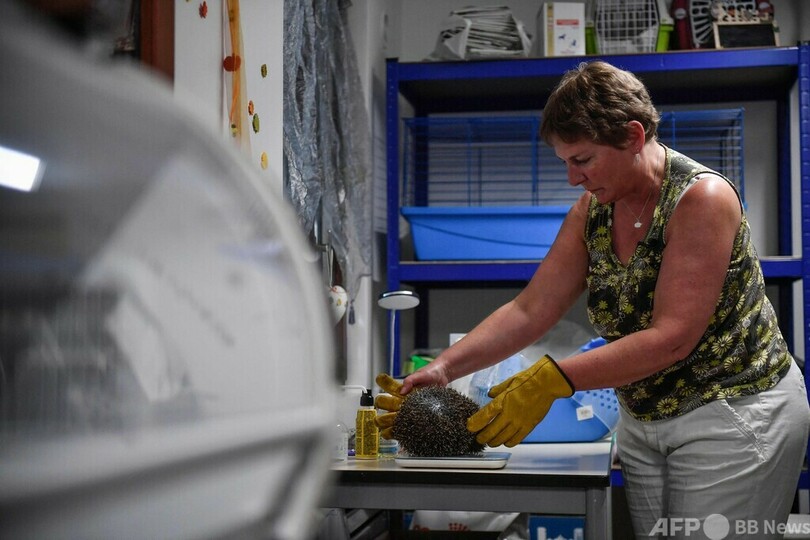 【7月10日 AFP】フランス・パリ南西郊外オルセー(Orsay)にあるハリネズミの保護施設「レ・プティ・キピック(Les P'tits Kipik)」。創設者のサラ・スタール(Sara Stahl)さんと夫のジェローム(Jerome Stahl)さんは、自宅の庭でハリネズミを保護する活動を続けている。(c)AFP