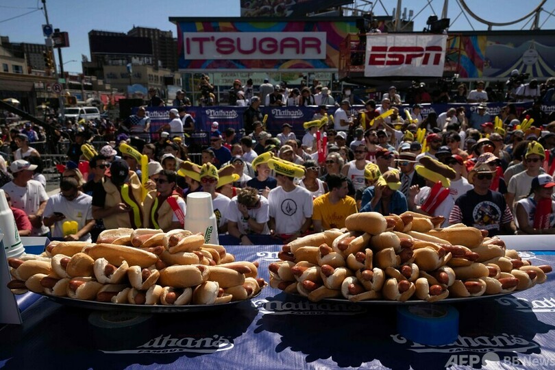 【7月5日 AFP】米ニューヨークのコニーアイランド(Coney Island)で4日、独立記念日恒例のホットドッグ早食い大会が開かれ、ジョーイ・チェスナット(Joey Chestnut)さんが10分間で63個を平らげ、15回目の優勝を果たした。女性部門は須藤美貴(Miki Sudo)さんが返り咲いた。