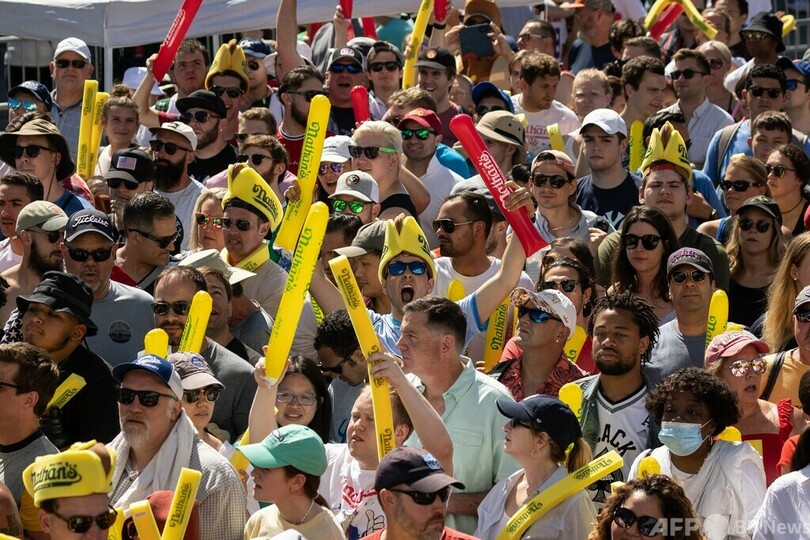 【7月5日 AFP】米ニューヨークのコニーアイランド(Coney Island)で4日、独立記念日恒例のホットドッグ早食い大会が開かれ、ジョーイ・チェスナット(Joey Chestnut)さんが10分間で63個を平らげ、15回目の優勝を果たした。女性部門は須藤美貴(Miki Sudo)さんが返り咲いた。