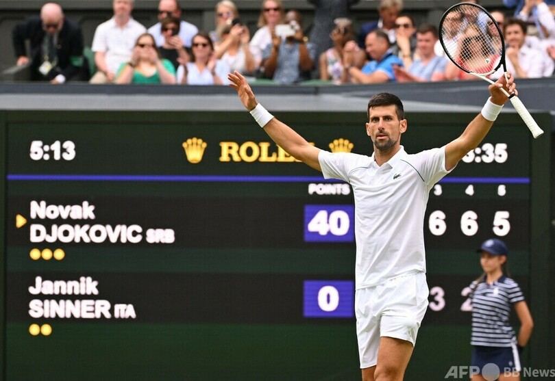 【7月6日 AFP】テニス、ウィンブルドン選手権(The Championships Wimbledon 2022)は5日、男子シングルス準々決勝が行われ、大会第1シードのノバク・ジョコビッチ(Novak Djokovic、セルビア)は5-7、2-6、6-3、6-2、6-2で第10シードのヤニック・シナー(Jannik Sinner、イタリア)を下し、自身11回目の大会4強入りを果たした。2セットダウンからの逆転勝利についてジョコビッチは、自分の力をまったく疑わなかったと話している。