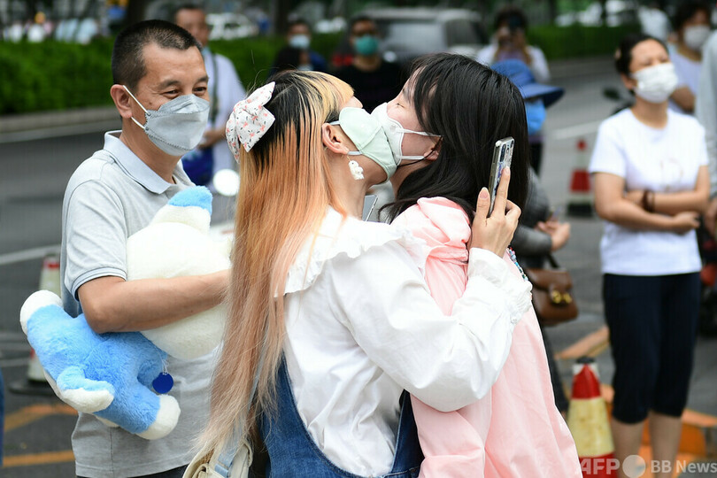 【7月6日 CNS】日本の公立高校入試に相当する北京市の初中学業水平考試(中考)が6月26日、終了した。市内のある入試会場では、多くの受験生が試験を終えて会場から出てくると、保護者やきょうだいがお出迎え。花束を渡したり抱き合ったりして、受験生をねぎらった。(c)CNS/JCM/AFPBB News