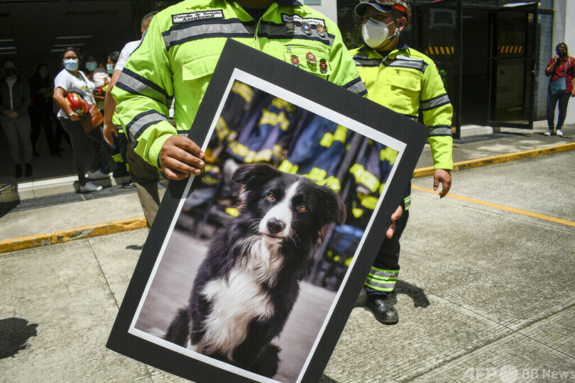 【7月6日 AFP】グアテマラの首都グアテマラ市で、市消防局の救助犬フォックスの追悼式が行われた。