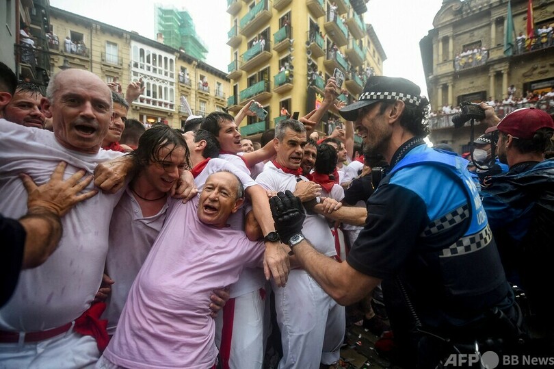 【7月7日 AFP】牛追いで有名なスペイン北部ナバーラ(Navarra)州パンプロナ(Pamplona)の「サン・フェルミン祭(San Fermin Festival)」が6日、始まった。一昨年と昨年は新型コロナウイルスの流行を受け中止されており、今年は3年ぶりの開催。
