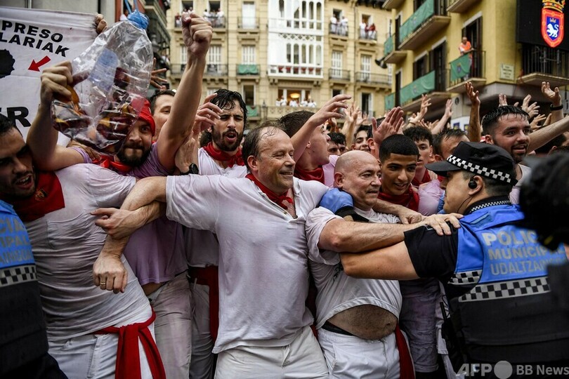 ビバ! スペインの牛追い祭り開幕 コロナ流行以来3年ぶり