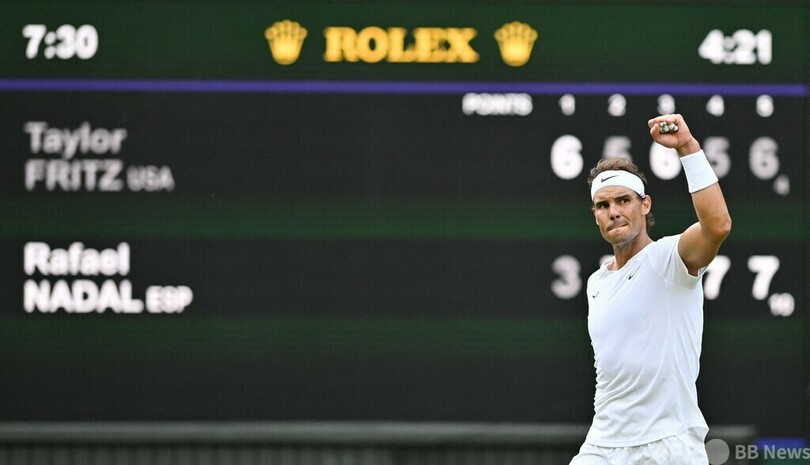 【7月7日 AFP】テニス、ウィンブルドン選手権(The Championships Wimbledon 2022)は6日、男子シングルス準々決勝が行われ、大会第2シードのラファエル・ナダル(Rafael Nadal、スペイン)は3-6、7-5、3-6、7-5、7-6(10-4)で第11シードのテイラー・フリッツ(Taylor Fritz、米国)を下し、4強入りを果たした。