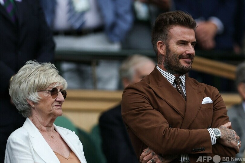 【7月7日 AFP】テニス、ウィンブルドン選手権(The Championships Wimbledon 2022)は6日、男女シングルス準々決勝などが行われ、サッカー元イングランド代表のデビッド・ベッカム(David Beckham)氏が母親と一緒に観戦する姿があった。(c)AFP