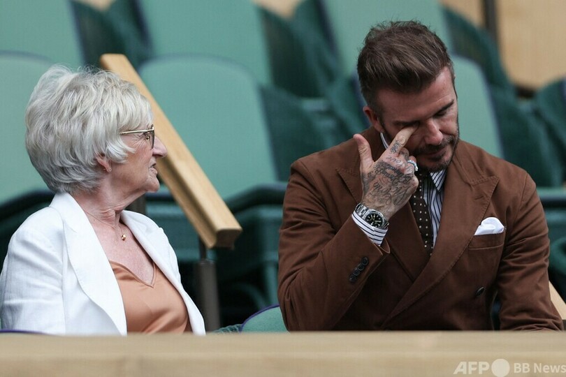【7月7日 AFP】テニス、ウィンブルドン選手権(The Championships Wimbledon 2022)は6日、男女シングルス準々決勝などが行われ、サッカー元イングランド代表のデビッド・ベッカム(David Beckham)氏が母親と一緒に観戦する姿があった。(c)AFP