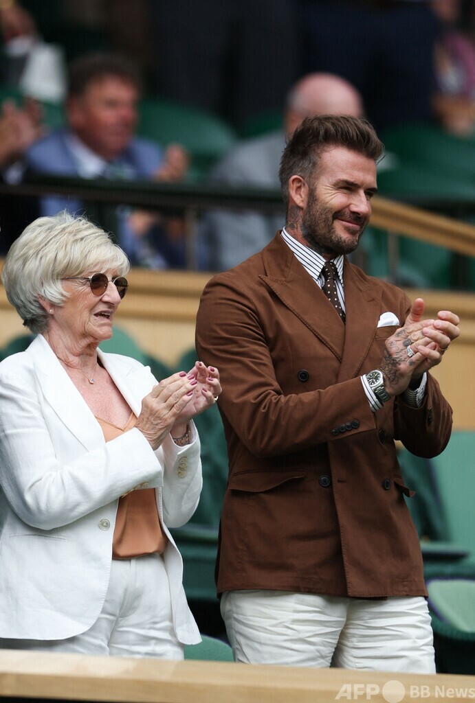 【7月7日 AFP】テニス、ウィンブルドン選手権(The Championships Wimbledon 2022)は6日、男女シングルス準々決勝などが行われ、サッカー元イングランド代表のデビッド・ベッカム(David Beckham)氏が母親と一緒に観戦する姿があった。(c)AFP