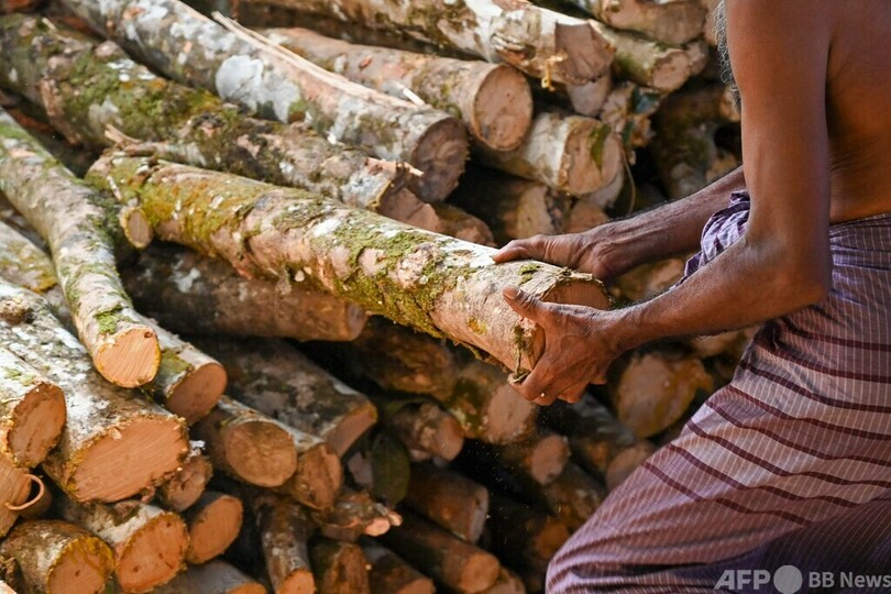 サムパス・トゥシャーラ(Sampath Thushara)さんは、茶葉と天然ゴムの生産が盛んな南部の村ネヒナ(Nehinna)で伐採業を営んでいる。「これまでは、生産できなくなったゴムの木を切るために、地主が私たちに金を払っていた」「今では、木を手に入れるために私たちが金を払っている」と話した。