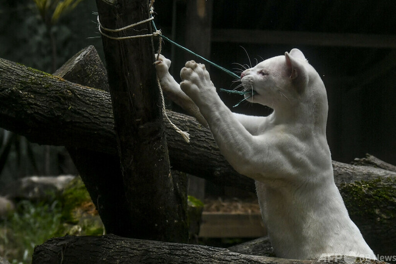 ニュース ライフ アルビノのネコ科動物、種はまだ分からニャい 南米コロンビア 2022年7月9日 16:08 発信地:メデジン/コロンビア [ コロンビア 中南米 ] このニュースをシェア ‹ › ❮ 3/10 ❯ コロンビア北西部メデジンの保護公園で保護されているアルビノ(先天性色素欠乏症)のネコ科動物(2022年7月8日撮影)。(c)JOAQUIN SARMIENTO / AFP 画像作成中 ! 【7月9日 AFP】南米コロンビアで初めて発見されたアルビノ(先天性色素欠乏症)のネコ科動物が、北西部メデジン(Medellin)の野生生物保護公園で保護されている。 種はまだ不明だが、専門家はジャガーかオセロットだとみている。 この個体は生後8か月。アンティオキア(Antioquia)県アマルフィ(Amalif)近くで当局に保護され、野生生物保護公園に移された。(c)AFP ライフ 一覧へ> メディア・報道関係・法人の方向け 写真・動画 購入のお問合せ>